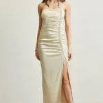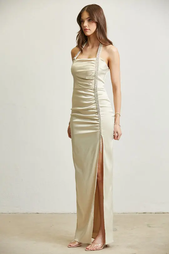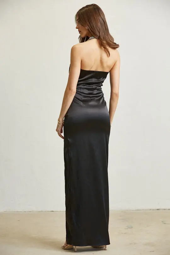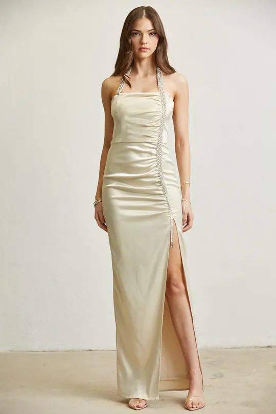 – RHINESTONE TRIM HALTER NECK