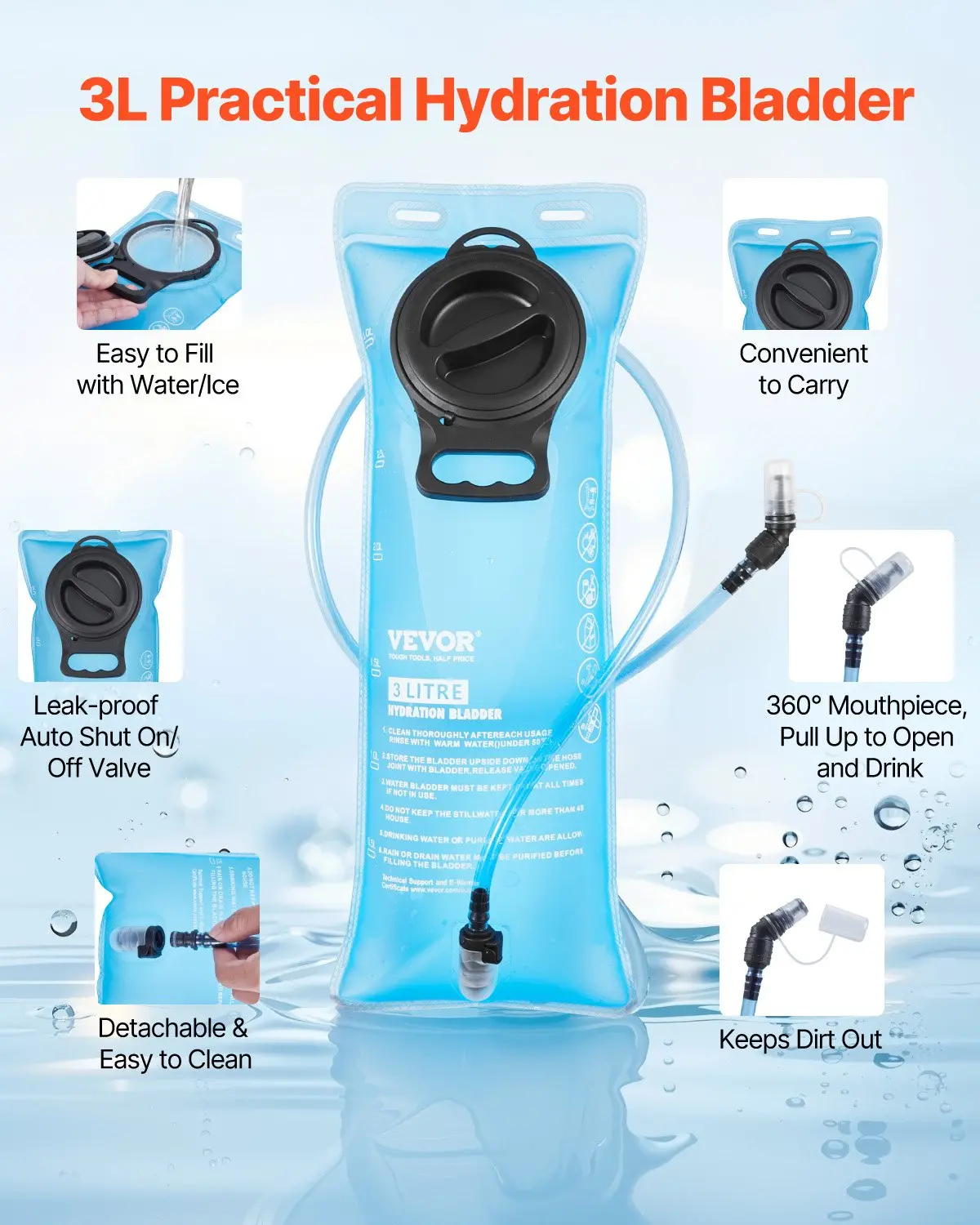 Hydration Pack Backpack 3L TPU Water Bladder Cycling Hiking Running Camping