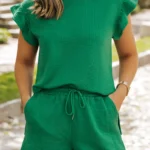 Experience ultimate comfort with this two-piece set. It includes a cozy quilted fabric, sleeveless top and drawstring shorts that are perfect for any laid-back occasion. Plus, mix and match them with your favorite closet essentials for a multitude of stylish combinations