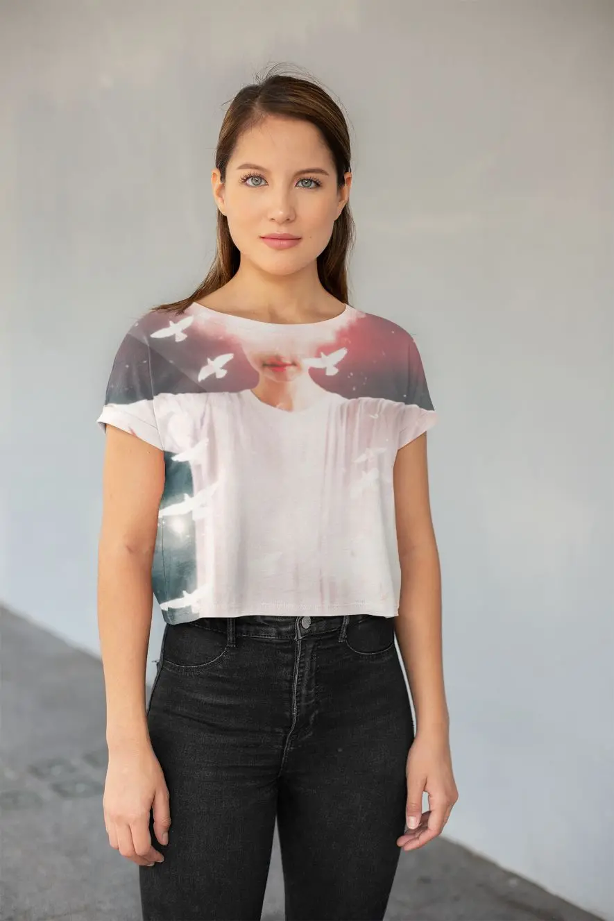 Looking for you next wardrobe favorite? Well, look no further because this crop tee is printed and sewn to fit you just right. To top that off, the original all-over design is definitely worth showing off, so don’t hesitate to own one of these tees – they’re meant to be adored.
