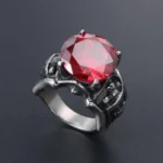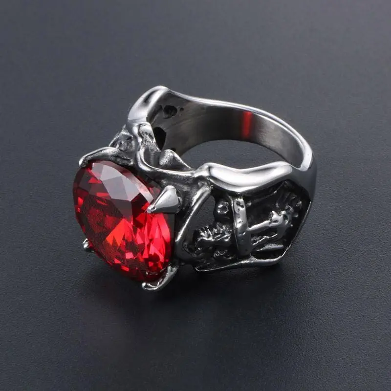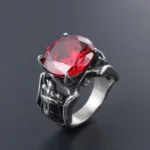 High Quality Stainless SteelMen Biker Ring with Red Stone