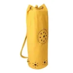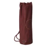 The OMSutra Chakra Rivet is a versatile yoga bag with a distressed grommet and rivets. The small grommets underneath give more room for air to circulate through the bag, keeping the contents drier and odor-free, so this piece is highly recommended for the hot or power yoga practitioner. It comes with an inside zippered pocket to keep keys and other items and is roomy enough formats, towels, water bottles or a change of clothes. Available in seven colors, each bag is made of strong, durable cotton twill fabric and fully lined with soft cotton. It comes with pull cord closure, designed to hold any heavy mat comfortably. Breathable and good for air circulation which helps quick drying of the Yoga Mat.