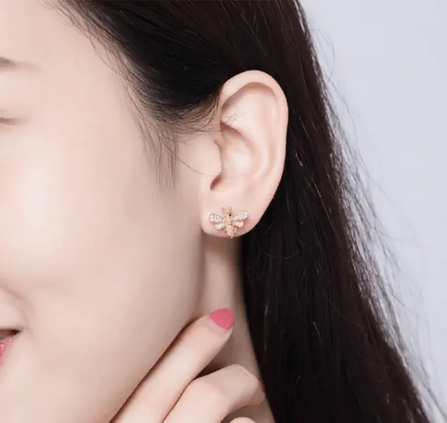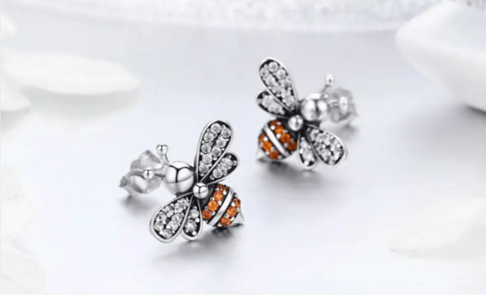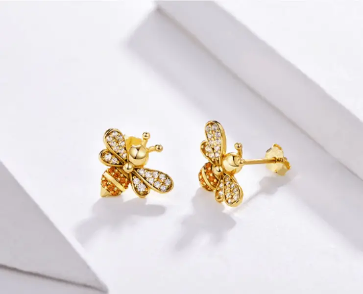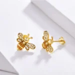 Gold Bee Earrings. These ‘bee-beautiful’ stud earrings will make you the envy of your friends with their multi-colored crystal detailing and adorable design. Crafted from sterling silver, these earrings feature gold plating for that extra bit of shine.