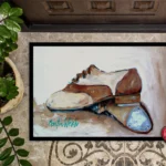 Welcome your guests in style with our Artwork Door Mat, designed to withstand almost any weather condition. This mat, measuring approximately 18 by 27 inches, is held together by durable black binding tape. Its top layer, composed of polyester felt, is dyed with the eye-catching image you see on the mat. A few layers below provide the mat with stability, while its rubber bottom is stamped to help prevent slipping and ensures safety. Our mat works wonderfully as both an indoor or outdoor door mat. For cleaning, simply hose it off with water or use a power washer – no need for any cleaner that produces suds. Avoid scrubbing with a brush, instead, opt for the vacuum on floor setting. Designed manufactured and printed in the USA, this mat is a perfect addition to your porch, outdoor kitchen, entryway, or any indoor space. Its unique design makes it a charming decorative rug that greets your guests and adds a stylish touch to your home decor.